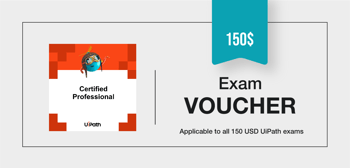 A UiPath 150 USD voucher takes 150 USD or 21,000 Japanese Yen off from any one UiPath Certified Professional exam. The vouchers are valid for one (1) year from the date of issue.